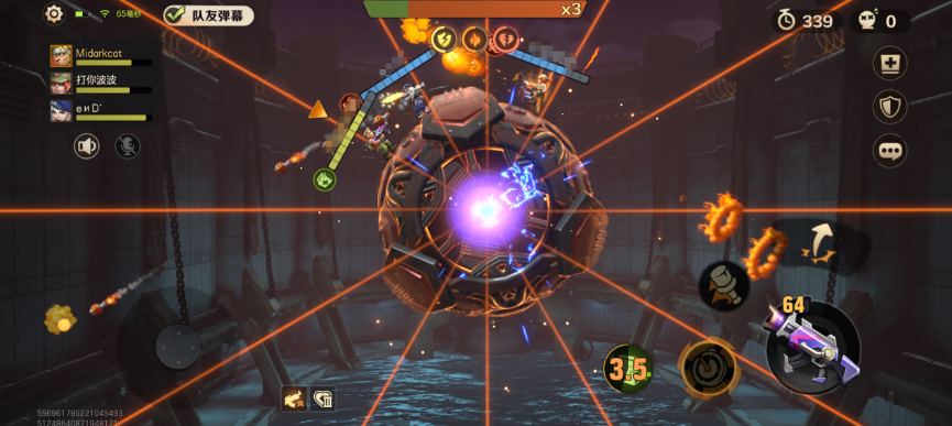 “联合行动”应该是玩家好评度最高的一个玩法。玩家可以通过世界或好友进行匹配,组成最多3人小队进行BOSS关卡挑战。每个BOSS不仅外形各异,甚至在战斗机制上也进行了独特的设计。比如磁力之眼的二阶段玩家会站在BOSS身上战斗,而磁力守卫则会在某个阶段甩出背景中的飞碟,带来3D的视觉反馈。联机玩法不仅增添了更多的社交属性,也让玩家颇有一种小时候坐一起打街机的快感。