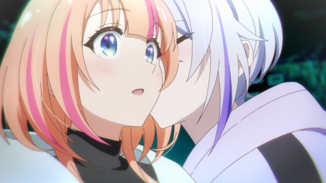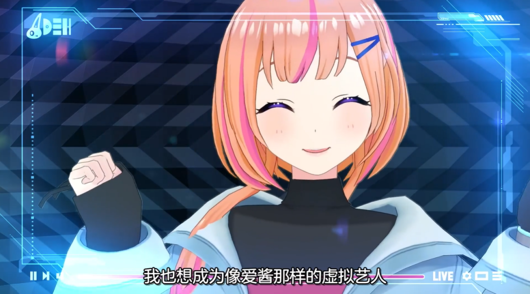 值得一提的是,作品里的“虚拟”也不是V圈观众所认知的那样。动画新人们为“虚拟艺人”,虽然需要通过直播、表演来获得与观众的连接,但设置与现实里的Vtuber并不相同,例如女主首集直播时所用形象,其实与自身样貌毫无二致,引得观众在社交平台吐槽:“她们这样不算皮套人吧?”