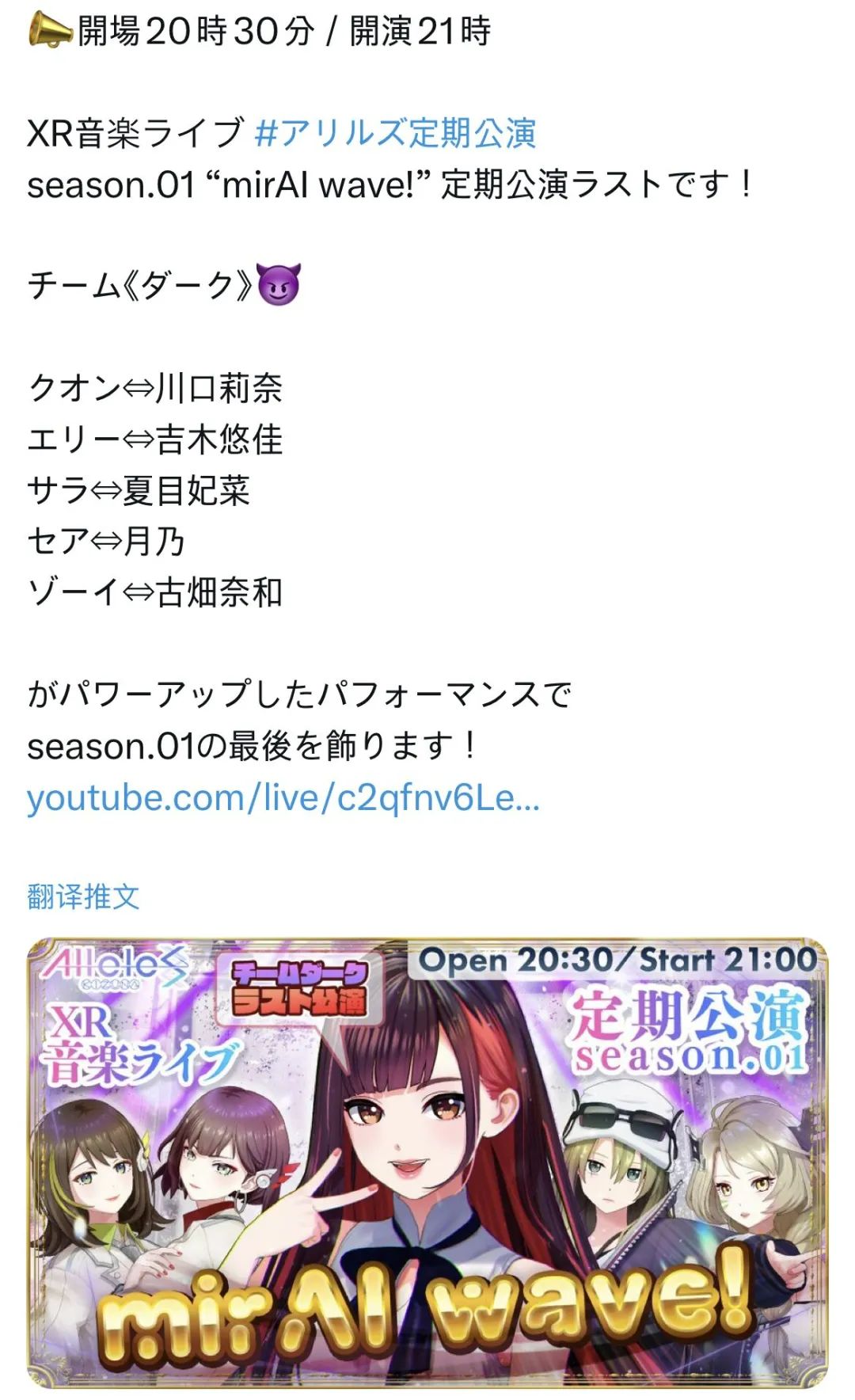 诸如此次TV动画《绊之Allele》中,Kizuna AI株式会社就展示了部分成果。寻常Vtuber往往选择避免暴露中之人,保留虚拟形象的神秘与纯粹,但《绊之Allele》主角团“PathTLive”角色全员的打造,则开启了新尝试。新角色们正在做的直播,的确是Vtuber的业务范畴,可索尼音乐唱片出道的待遇,以及歌曲MV添加中之人们练习的样子,则试图将Vtuber、声优偶像的打造合二为一。