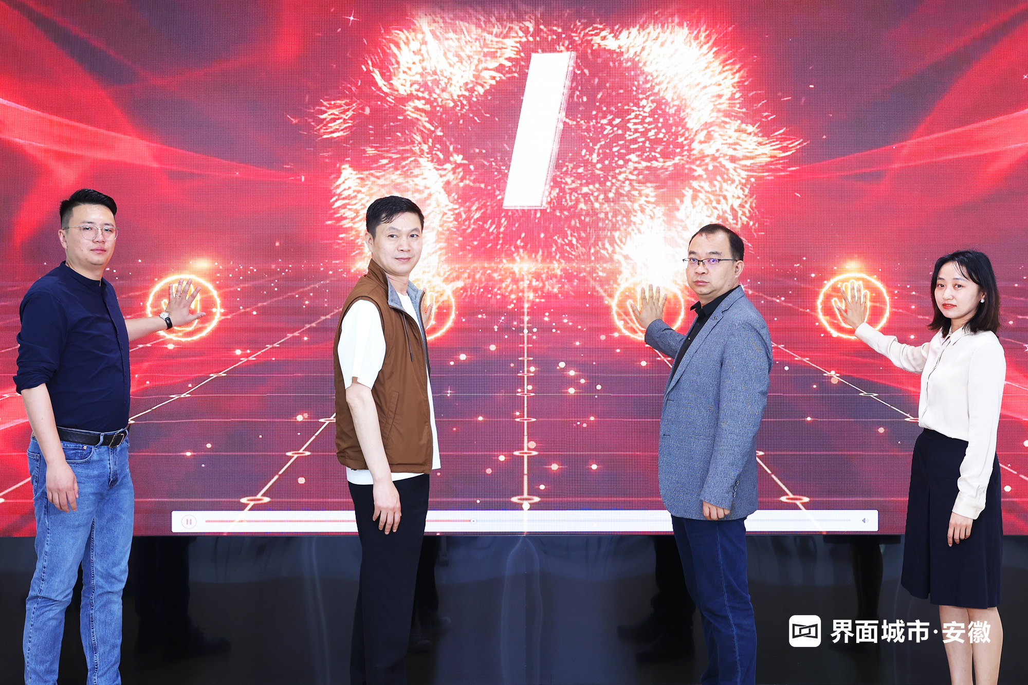 随后,界面精准网络科技总裁潘端峰、合肥工投肥西公司总经理桂斌、安徽工业互联网产业创新中心负责人边婧、界面安徽总经理胡泓炜上台启动界面安徽上线仪式。