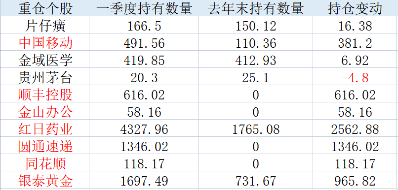 今年一季度,该基金大手笔买入了新晋市值一哥中国移动(600941.SH)。顺丰控股(002352.SZ)、金山办公(688111.SH)、圆通速递(600233.SH)、同花顺(600233.SH)等四只个股一季度新晋成为前十大重仓股,分别新买入了616.02万股、58.16万股、1346.02万股、118.17万股。