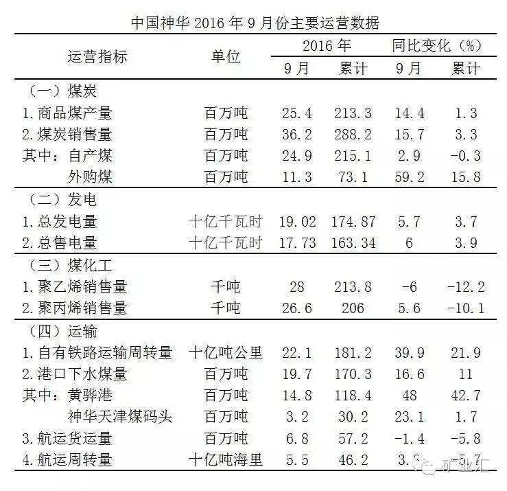 (2)今年1-9月,神华煤炭销售量同比增长3.3%,其中外购煤同比增加15.8%,9月份同比增加达到59.2%,官方公告称主要原因是神华利用自有运力加大铁路沿线外购煤销售力度。