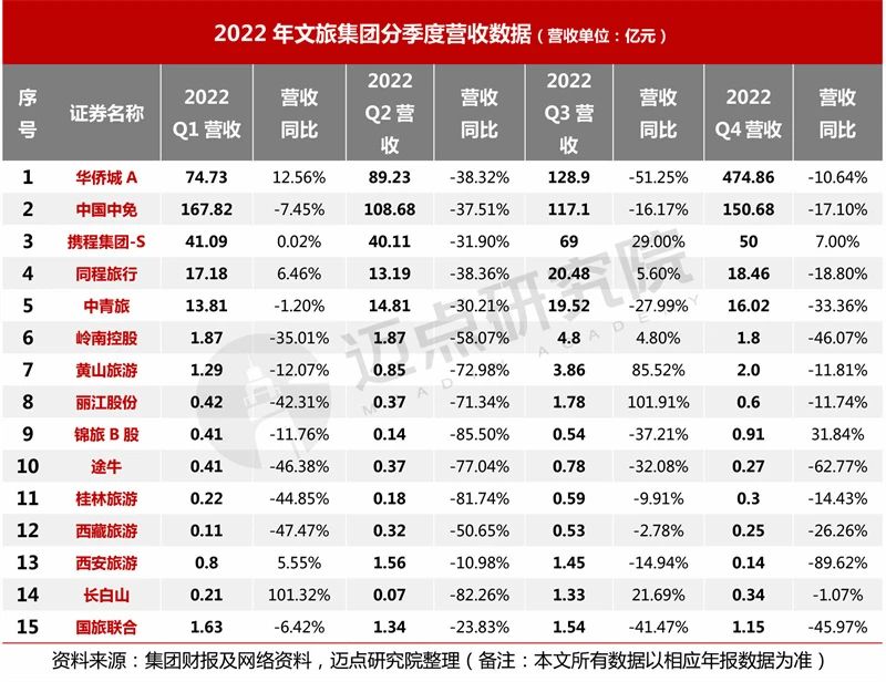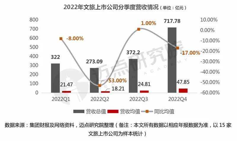 据迈点研究院不完全统计,完整公布有四个季度数据的文旅上市公司共有15家。从单季度数据比较分析,整体营收情况与疫情因素密切相关。