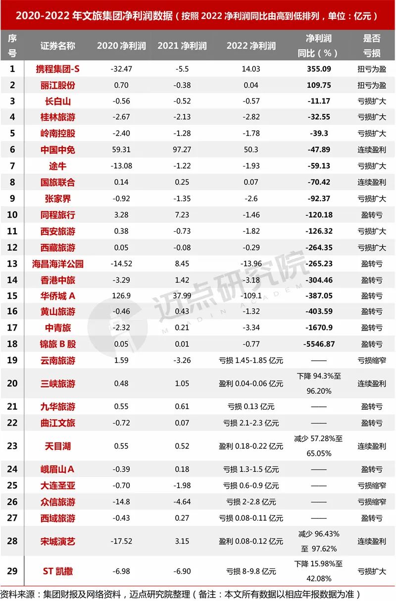 四、2020-2022文旅集团净利润对比:连续盈利5家,扭亏为盈2家,其他各类亏损22家
