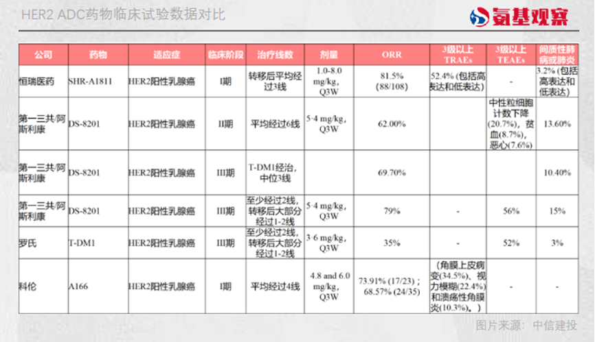 在众多跟随者中,恒瑞医药的HER2 ADC药物SHR-A1811进度基本是最快的,2022年6月,SHR-A1811已经进入了三期临床。