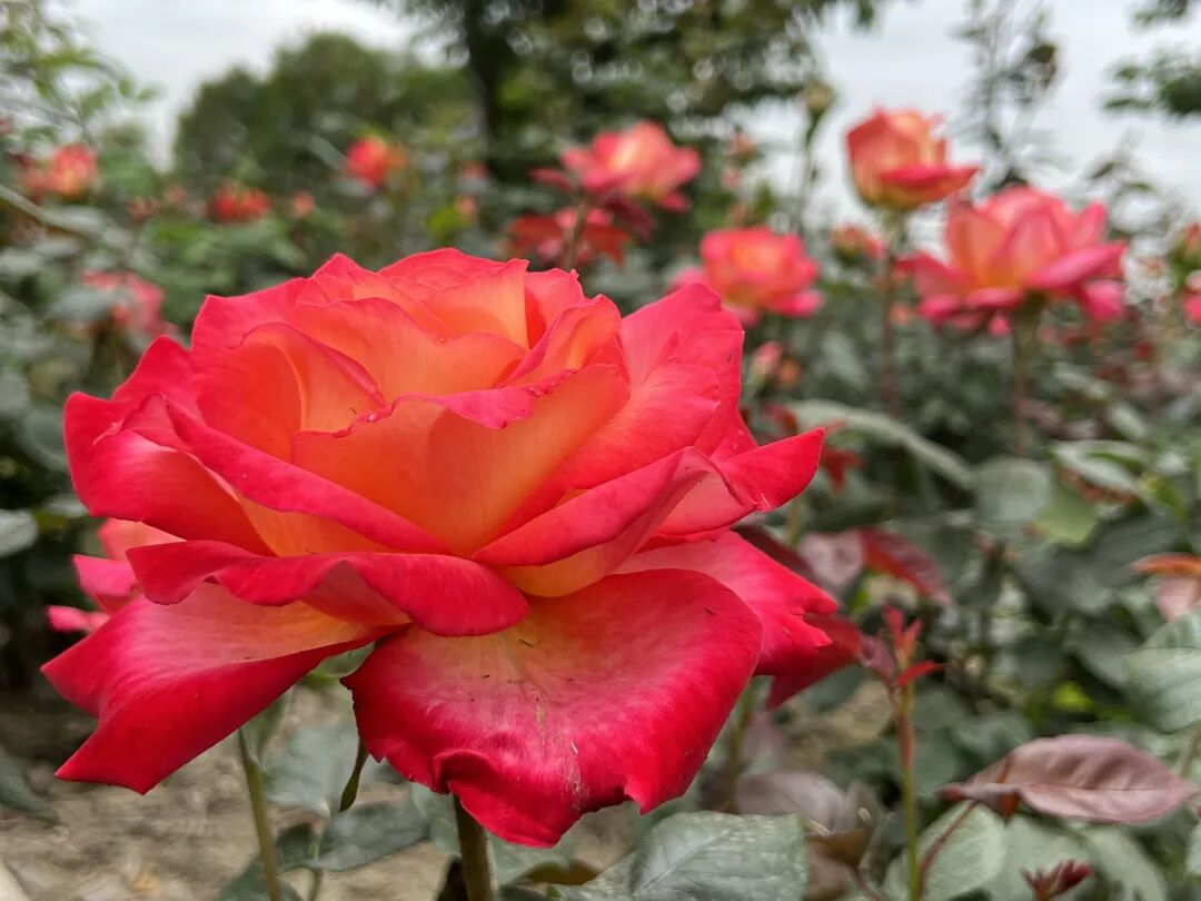 顾村公园月季园总面积约35.6公顷,其中月季种植面积超2万平方米,种植了灌木月季、藤本月季、大花月季、微型月季、丰花月季、地被月季、树状月季等11个类别128种月季。月季花期是4月底至12月底,其中5月和10月为盛花期。