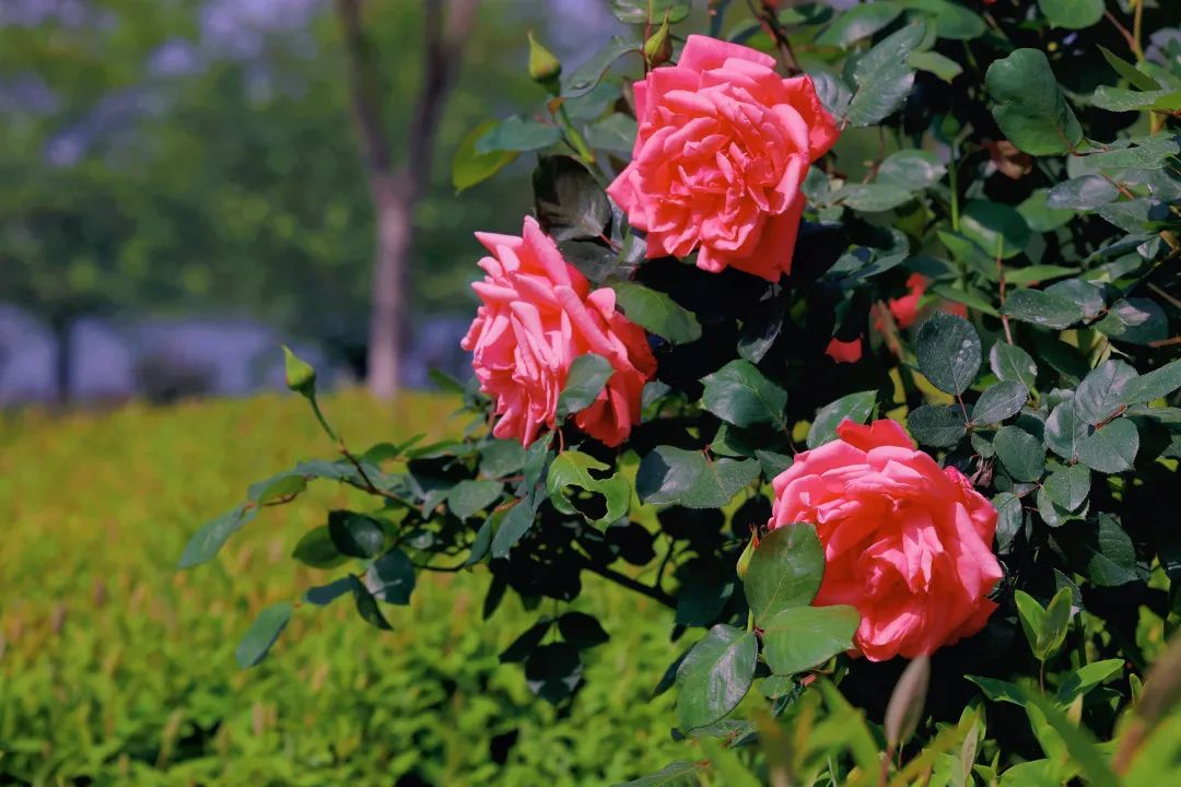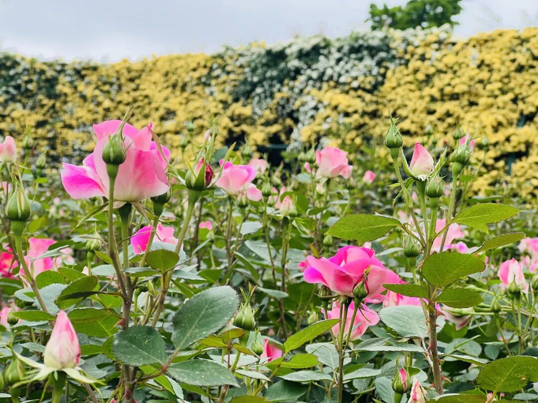除了花开成海的木香,园内五颜六色、品种繁多的月季也逐渐进入盛花期,有的如红宝石般闪耀;有的硕大美丽,宛如孩子的笑脸;有的粉白相间、惹人怜爱。
