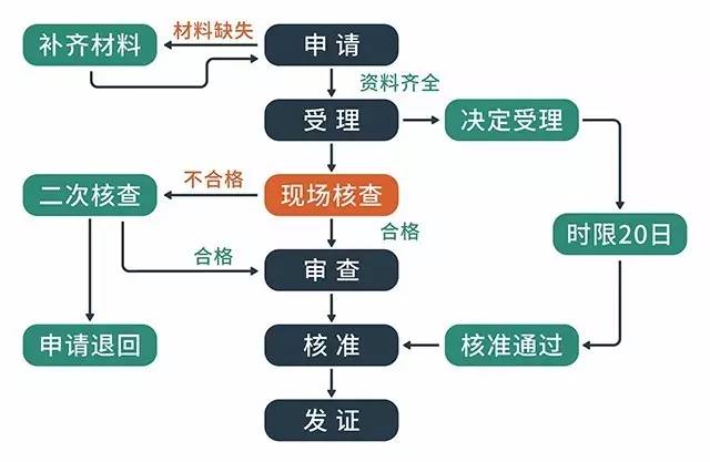 施工之前,最好拿着图纸让食药监局负责的专员审核一遍,不然装修好改动就损失大了。最后按照流程进行申报: