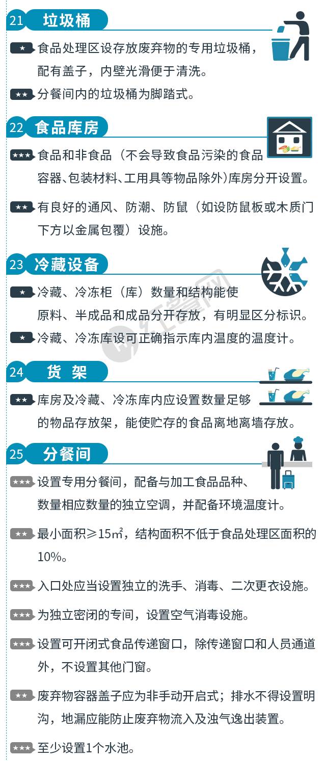 餐厅在设计时就应该把以上因素充分考虑进去,不然到时候食药监局审核不过再去改动成本就大了。普通餐饮、单位食堂、中央厨房和集体用餐配送单位的食品经营许可现场核查表如下: