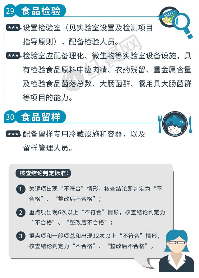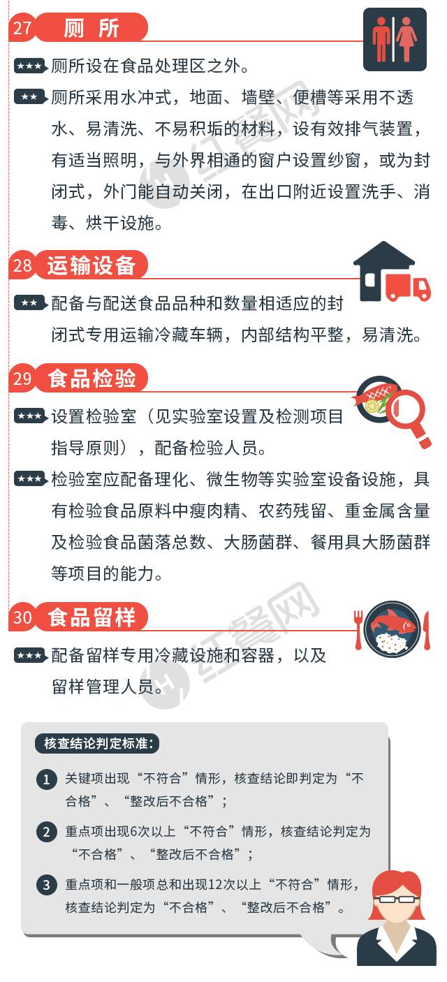 其中最难的是现场审核,所以要在餐厅设计和施工前,就要把审核的内容研究透。审核项目分为关键项、重点项与一般项,关键项必须全合格。