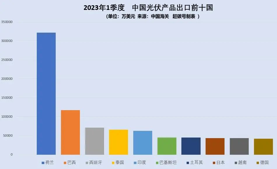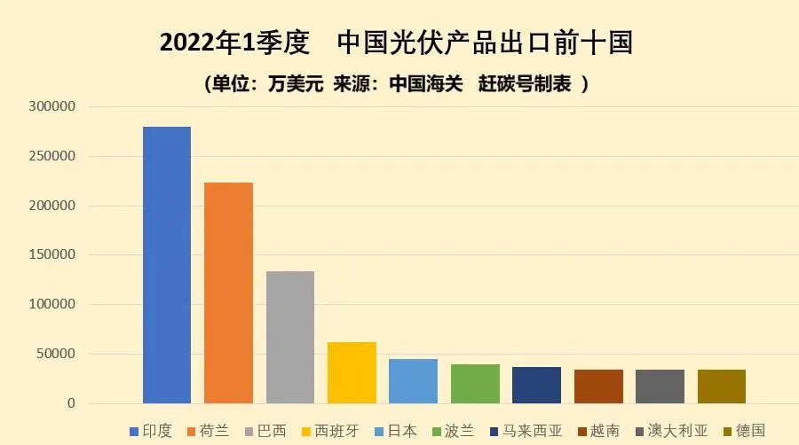 今年一季度,我国光伏产品出口的前十个国家分别是: