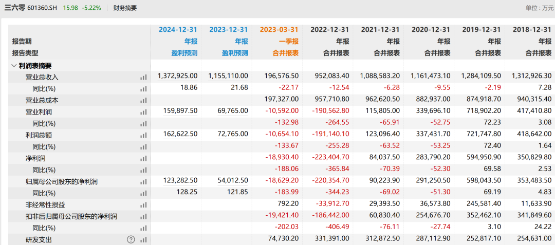4月21日晚,360发布年报,2023年公司实现营收95.21亿元,同比减少12.54%;归属于上市公司股东的净亏损达22.04亿元,同比骤降344.23%。而上一次360公开出现亏损的情况,还要追溯到3Q大战之前的2008年。