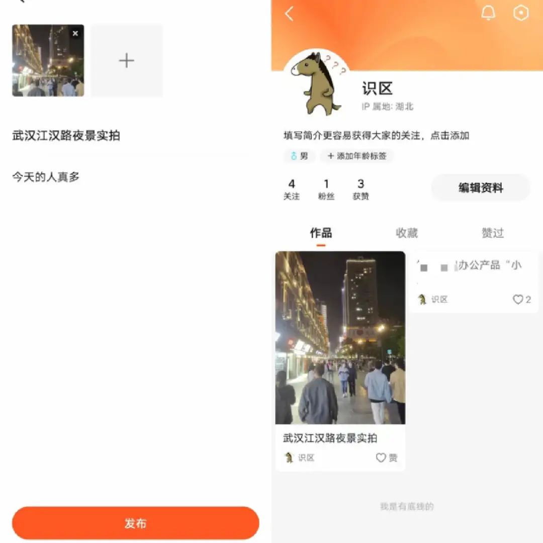 有柿设有发布功能,用户能自行发布内容,最多支持上传18张图片,且可以对图片进行编辑,目前还无法自行发布拍摄的视频。编辑好图片,并设置标题和想表达的内容后,即可对外公开发布。发布的内容会存放在个人中心的作品内,此外,也能看到收藏、赞过的内容。