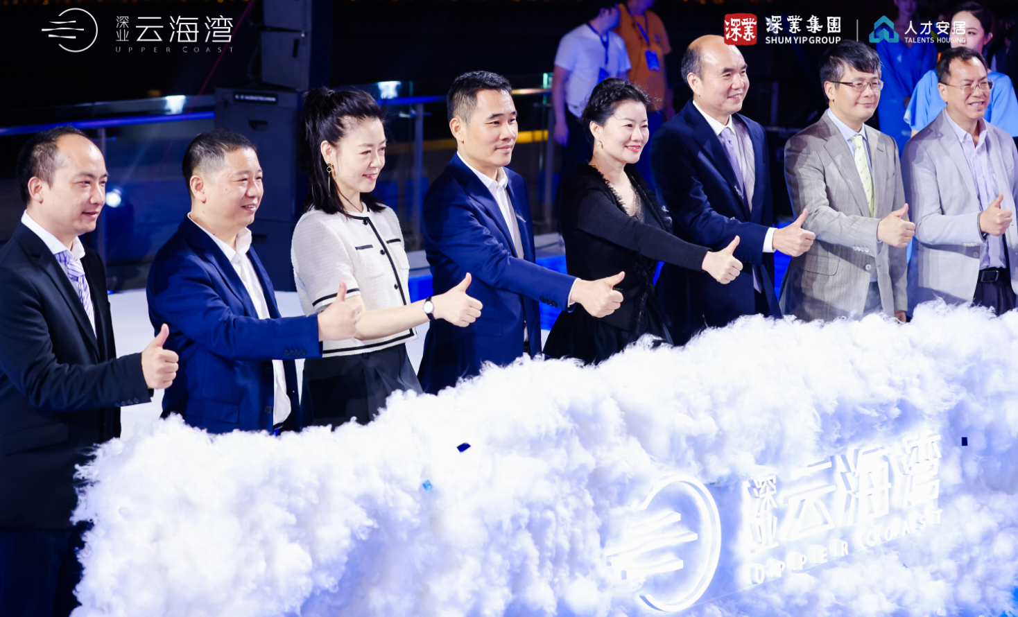 而伴随着全球首播的项目VCR与特邀嘉宾——国宝级天籁之音谭晶老师《龙文》的唱响,在每一位来宾的见证下,在热烈的现场氛围中,深业云海湾全球发布盛典来到了最高潮:由深业集团有限公司党委副书记、董事蔡浔女士、深圳市人才安居集团有限公司副总经理王志楷先生、深业鹏基南方集团有限公司董事长王明峰先生、深圳市盐田人才安居有限公司董事长闵丽女士等领导及代表一同为项目启动揭幕。