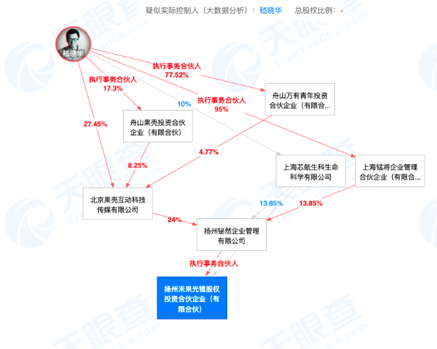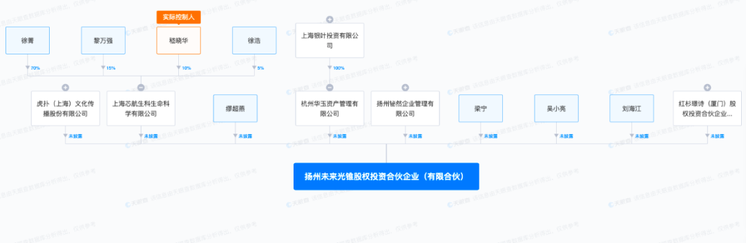 在芯航生科之外,红杉、虎扑等四家机构也均持有未来光锥股权,具体比例未披露。