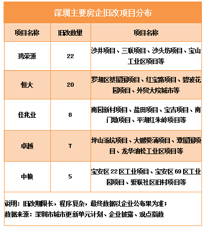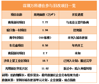 相比之下,尽管万科过去多年间在深圳加大旧改投入,但在旧改数量、规模等方面仍与鸿荣源、恒大、佳兆业等房企有所差距。