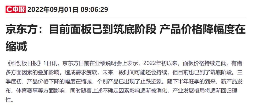 有意思的是,陈炎顺这番“先抑后扬”和“三月份修复”的论调,和半年前京东方在业绩会上给出“筑底止跌”和“下半年旺季”的说法如出一辙。