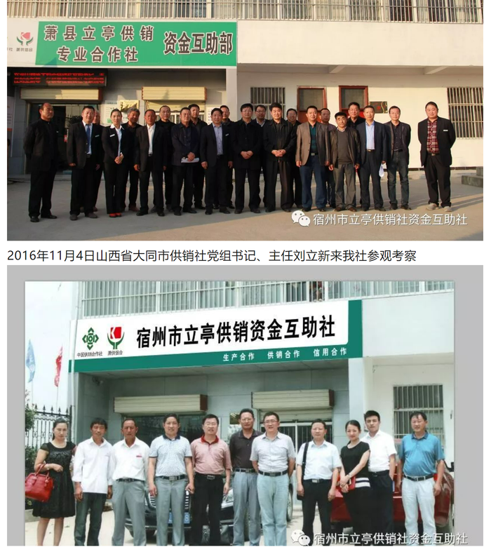 该公众号于2018年1月17日第一次发布推文,推文内容介绍为2016年,文章图片中分别有“萧县立亭供销专业合作社资金互助部”和“宿州市立亭供销资金互助社”字样。