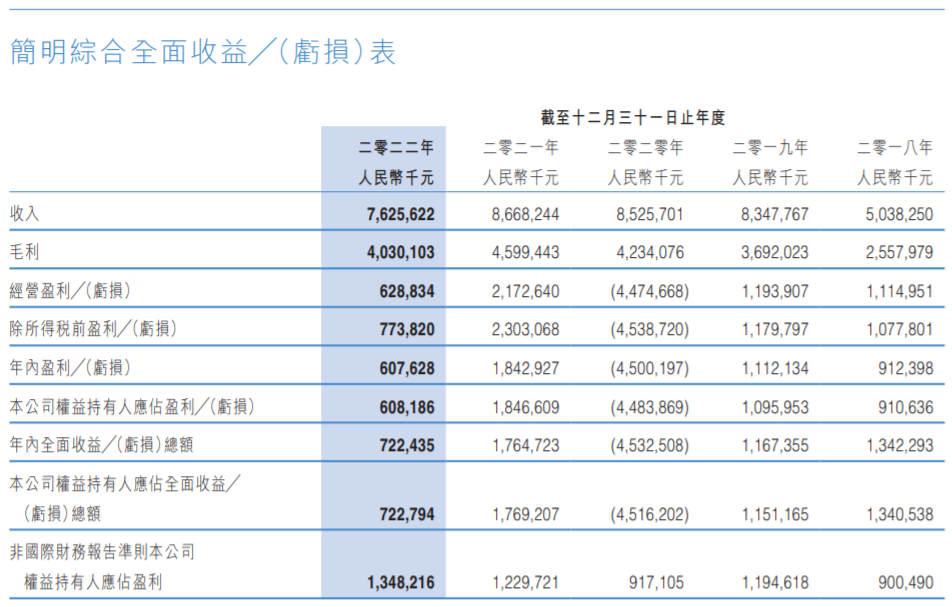 即便2022年业绩有所回升,但与哪怕是“踩雷”的2019年相比,营收也只恢复到当年的50.22%。