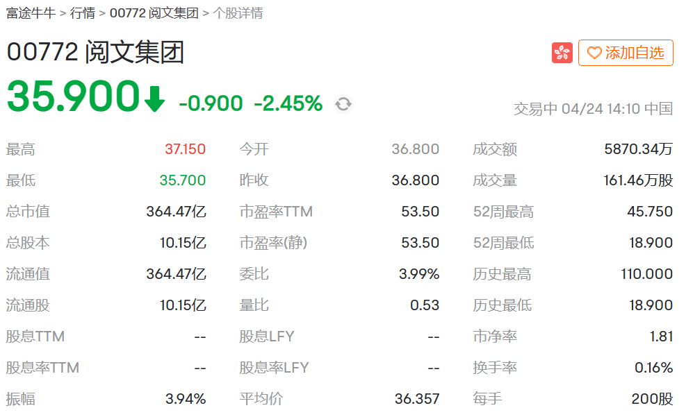 去年年底的AIGC到今年年初的ChatGPT,阅文都吃到了热门概念的“红利”,股价从去年10月底的近两年低位18.9元/股拉升到最高45.75元/股,市值也始终保持在350亿元以上。