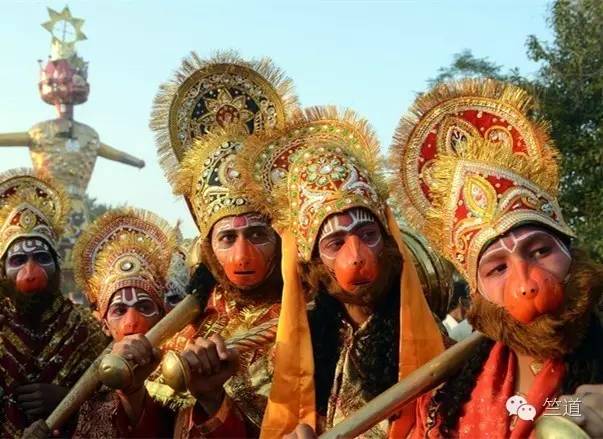 印度民众在模仿哈努曼,猴神在印度很受欢迎