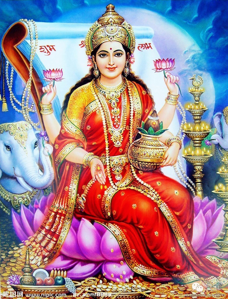 排灯节还是印度民众迎财神的节日,这一天是吉祥女神拉希什米(Lakshmi)一年一度下凡的日子, 自然是庆典的高潮。 家家户户打扫庭除, 开大门, 张灯结彩, 迎接财神拉希什米的到来.四手女神拉希什米手持莲花,拜者如云。拉希什米女神不仅代表财富, 智慧,运气, 也是美貌和生命力的象征。