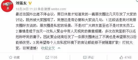 京东最近最大的新闻是什么?绝大多数吃瓜群众都会提到“刘强东朋友圈怒斥,以后不要直呼奶茶妹妹”。10月21日,该消息一出,立即引爆社交媒体,各大媒体跟进报道。10月24日,远在国外出差的刘强东微博解释:私人聚会针对朋友,不是对广大网友甚至也不是对京东员工,我希望每个人在私密环境下的言论都能够不被随意扩散!打扰大家,非常遗憾!