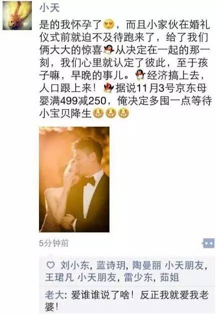 众所周知,刘强东奶茶妹妹,似乎成了京东每逢重大事件必出的话题,也成了“打劫”天猫双十一屡试不爽的“话题炸弹”。去年双十一前,2015年11月1日,奶茶妹妹承认婚礼前怀孕,霸道总裁刘强东朋友圈示爱,惹得无数单身狗羡慕嫉妒恨。同时,也短期内成功抢夺天猫首次举办双十一晚会的风头,让不少剁手族将眼光转移到京东身上。