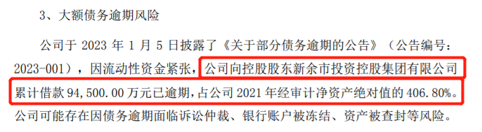 根据最新的业绩预告,2022年,*ST奇信净资产预计为-6800万元,经审计的 2022 年度报告中归属于上市公司股东的所有者权益仍为负值。如果终止上市,9.45亿资金可能也无法偿还,算上收购价近11亿元,新余国资将近20亿的投资损失惨重。