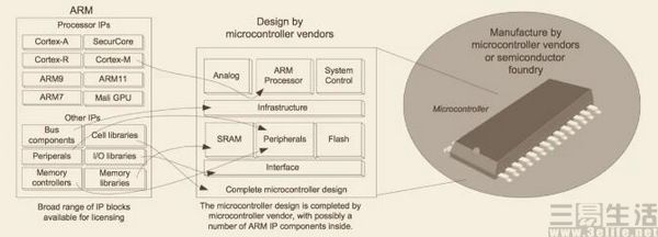 不同于高通、联发科、华为,乃至苹果,ARM其实并不针对某个特定领域和场景设计及开发芯片,而是提出基础的指令集设计。通过授权的方式,例如APoP IP(使用层级授权)、IP Core(内核层级授权),以及Architectural(架构/指令集授权),ARM设计包括指令集架构、微处理器、图形核心和互连架构在内的IP,来帮助其他芯片公司进行具体的设计开发,并从中获取技术授权费用和版税。
