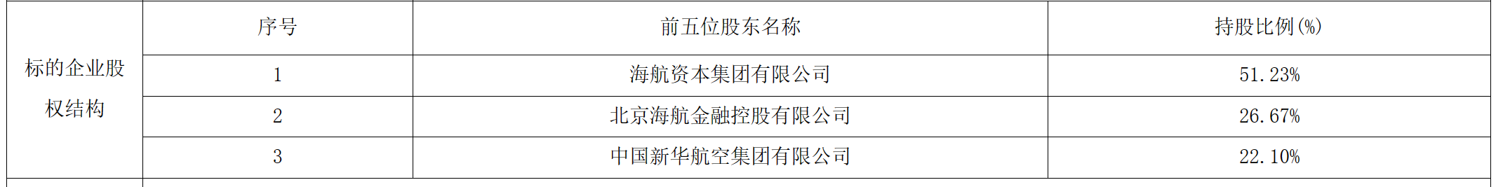 据挂拍公告显示,渤海信托三大股东分别为海航资本集团有限公司、北京海航金融控股有限公司和新华航空,持股占比分别为51.23%、26.67%和22.1%。