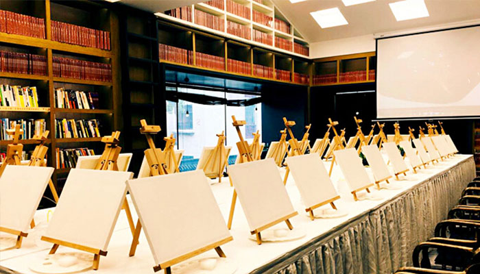 徜徉在青砖白瓦间、小桥流水中,水墨风情便在浓淡水色之间肆意挥洒,道不尽的风流。老师们似乎看到了诗与远方,不禁起了挥毫泼墨的小兴致。“懂行”的奥迪似早有预见,已在三联书店的二楼准备了一场全新奥迪A4L与油画水彩的对话,让久伏案头、辛苦码字的我们拿起画板。虽然码字的笔和画画的笔有很大不同,但是这股新鲜劲儿,还是让大家迅速沉醉其中。