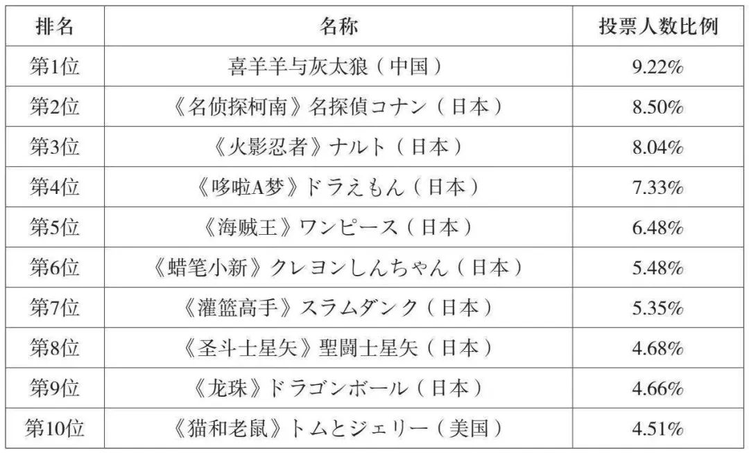 漫画受国人喜爱程度排行榜 2010年数据