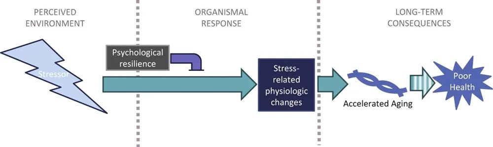 美国耶鲁大学的研究人员在 Nature 子刊" Translational Psychiatry "上的一项研究表明,不断累积的压力会通过加速细胞衰老速度来影响人体生理和心理健康,即压力越大,人的衰老速度越快。他们提出,可以通过加强情绪调节和自我控制来最大程度地减少压力的这些不利后果[4]。