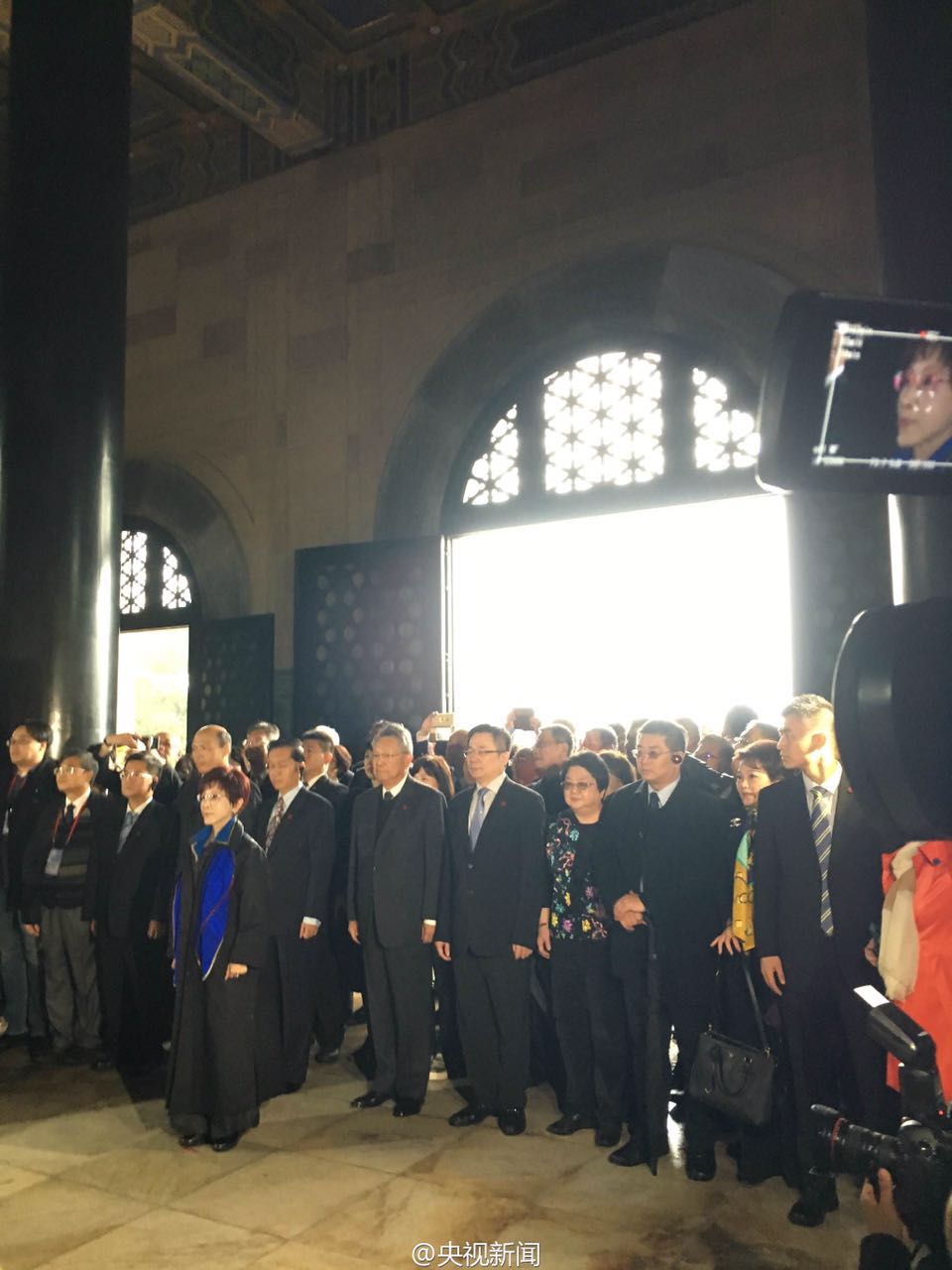 早上9时20分左右,绵绵秋雨中,中国国民党主席洪秀柱率领中国国民党大陆访问团抵达南京中山陵拜谒,向孙中山先生致敬。