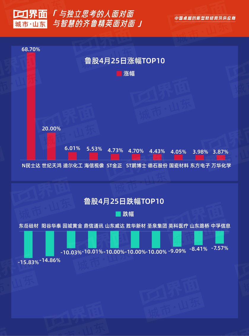 4月25日,山东61股上涨,231股下跌。