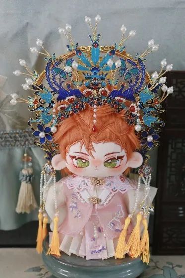“游园星梦”——以《光与夜之恋》夏鸣星为原型的娃娃,头戴的京剧凤冠“牵丝”非常精致(图源微店青梅酌酒买家秀)