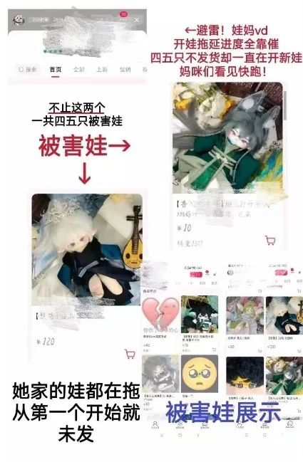 盗版商家通过盗用娃妈发布的设计图与照片,制作类似的产品进行销售。但由于没有设计图原件,也未经历娃妈严苛的审美与质检,盗版娃娃一般存在各种瑕疵,甚至会“鼻歪眼斜”。