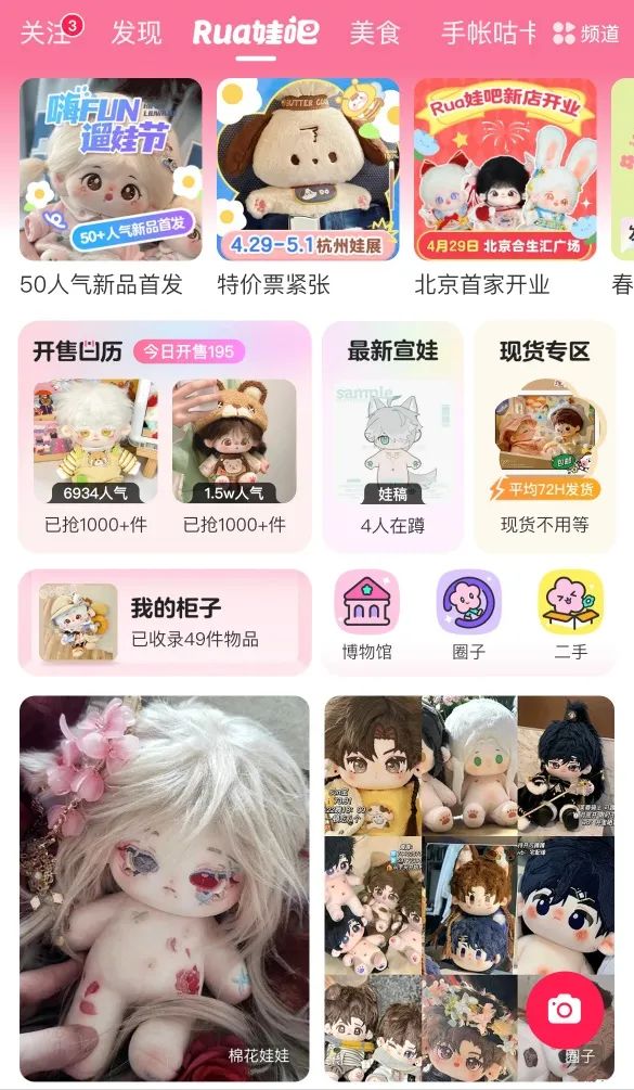 目前发展最为完备的棉娃交易平台是微店APP。2013年诞生的微店目前主打二次元、棉花娃娃、潮玩、爱豆、史莱姆等亚文化产品,2020年成立国内第一个正版IP授权的棉花娃娃品牌“Rua娃吧”。针对棉花娃娃开辟了“娃欧博物馆”“二手交易”“开售日历”“娃柜”等多种实用功能,也多次组织棉花娃娃线下展会,并开设了线下实体店。