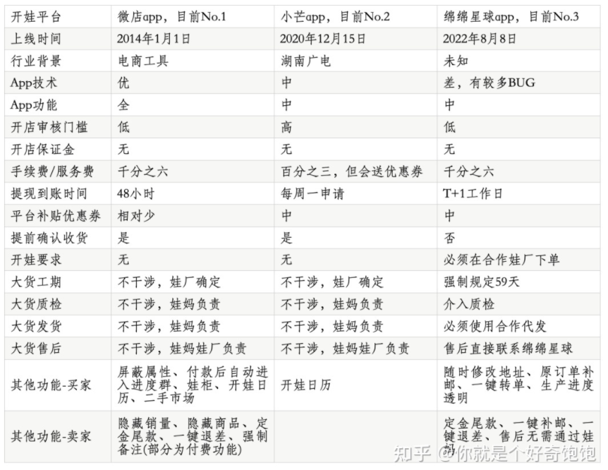 排名前三的棉花娃娃交易平台对比(图源知乎@你就是个好奇饱饱)