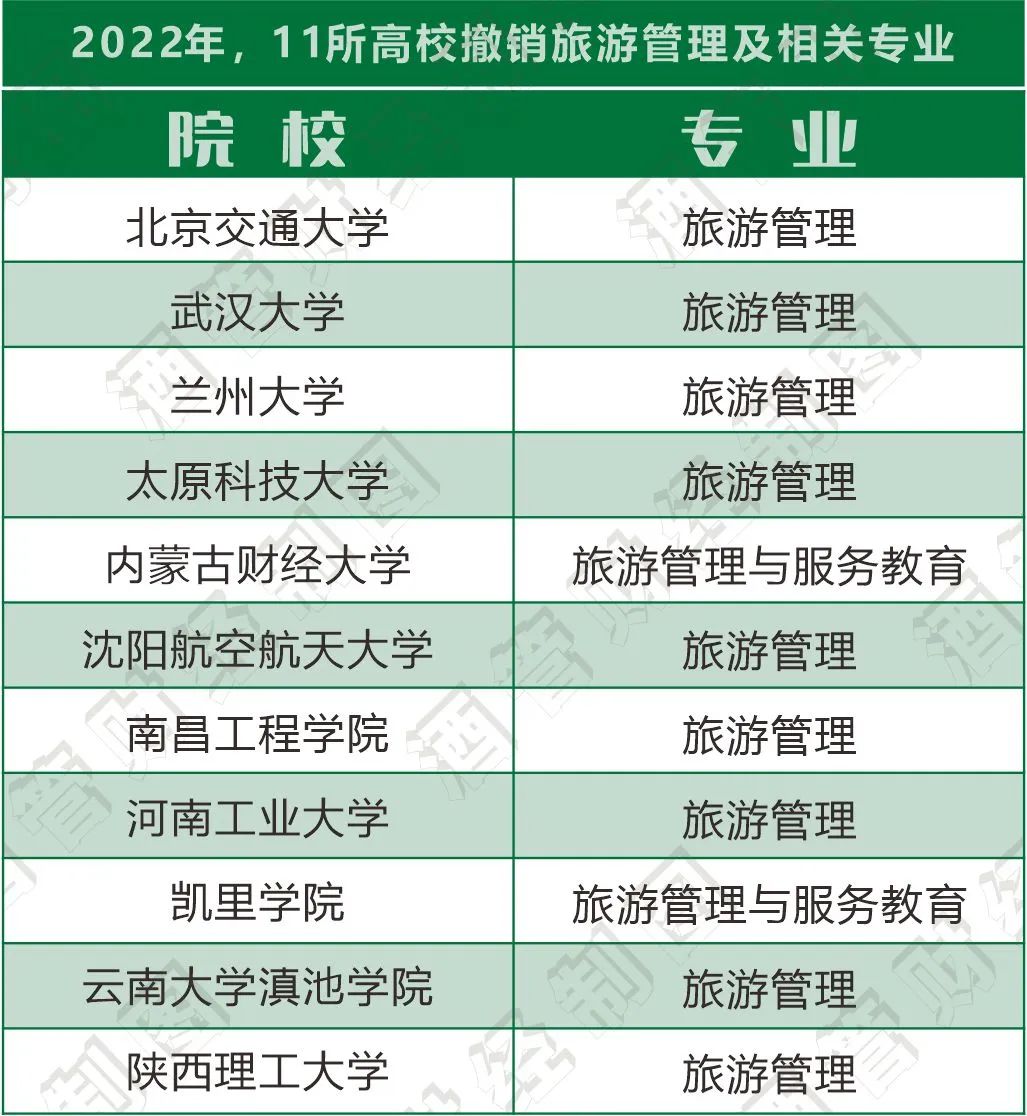 若将关注范围扩大至旅游行业,在2022年,还有11所高校撤销旅游管理及相关专业。