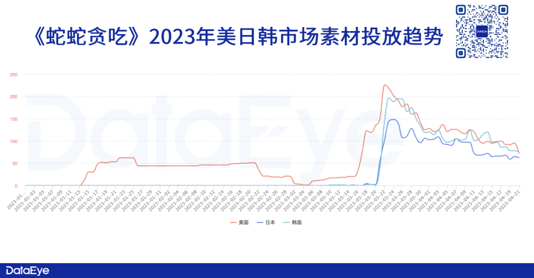 其中,美日韩三个市场是《蛇蛇贪吃》主要投放地区。