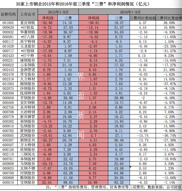 成本不减反增的案例同样存在。重庆钢铁(601005.SH)“三费”支出同比增加5.37亿元,增幅近40%。今年前三季度,重庆钢铁净亏损30.91亿元,今年连续三个季度成为“亏损王”。