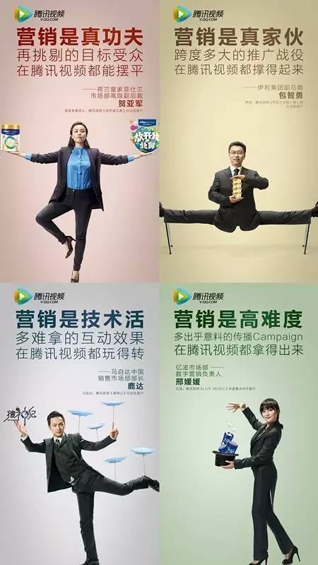 但是,在腾讯视频的营销价值传播中,广告主的市场部大咖却成为了广告片的主角,不仅以非常诙谐幽默的形象出现在视频和海报中,还亲自对腾讯视频的营销价值进行证言。这看起来是一个传播活动,但是,蕴含的更深的逻辑却是——在今天这个互联网时代,广告主和媒体之间的关系正在发生变化,从过去的契约代理,变成了相互协同的关系。媒体的价值挖掘,是一个互相启发,共同挖掘的过程,协同创意才能让平台的营销价值更大化发挥,营销效果的搭乘不再是单方面的事情,而是相互协作的事情。