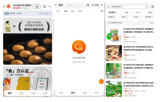 京东搜索“虎头局渣打饼行”,虎头局的京东自营旗舰店已难觅踪影。