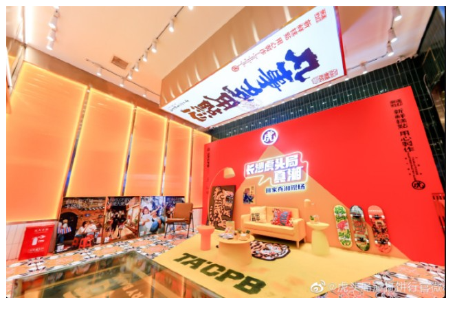 有了资本加持,2021年的虎头局在上海设立总部,包下虹桥万通中心一整层的办公室;一路从长沙挺进广州、上海、北京、武汉、深圳5座城市;营销活动更是尽显高调,在2021年尾,虎头局发起了一场包括广告曝光、主题店焕新、卫视节目亮相等在内的营销活动,同时梦幻联动文和友、茶颜悦色等多个人气品牌,组成“湘军”举行主题活动。