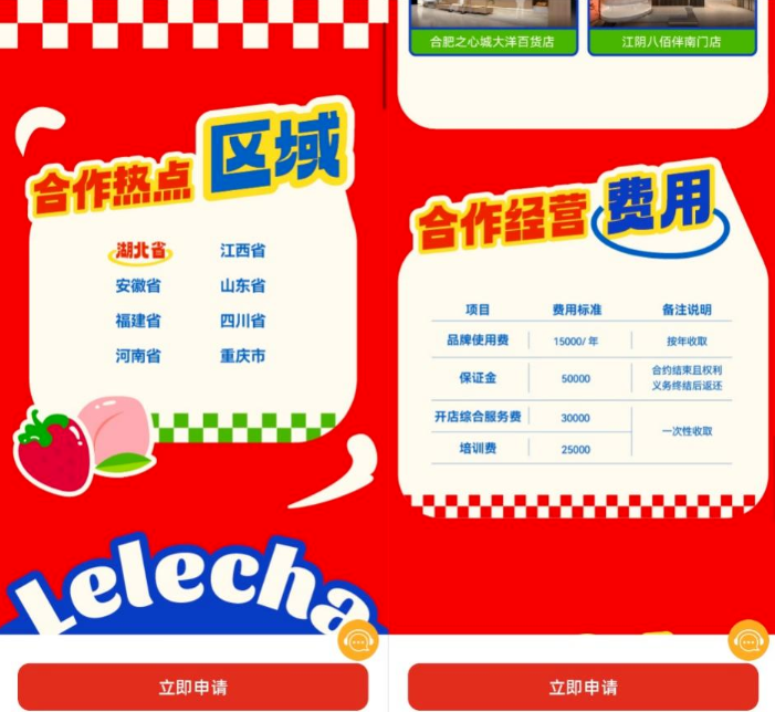 锌刻度从乐乐茶唯一加盟官方申请渠道了解到,目前乐乐茶的合作热点区域为湖北省、江西省、安徽省、山东省、福建省、四川省、河南省和重庆市;合作费用为品牌使用费15000元/年、保证金50000元(合约结束且权利义务终结后返还)、开店综合服务费30000元、培训费25000元,共计12万元。