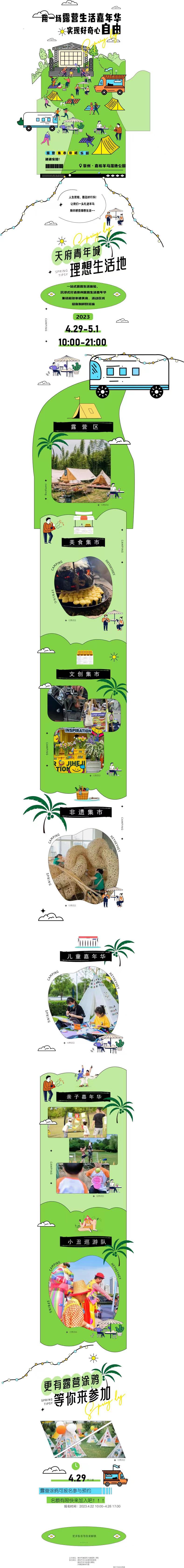 4月29日—5月1日,由崇州商务和大数据局主办,崇州市文化体育和旅游局、崇州市羊马街道办事处、共青团崇州市委协办的“天府青年城·理想生活地”2023崇州露营生活嘉年华,每日10:00-21:00,将在崇州市嘉裕羊马湿地公园举行。