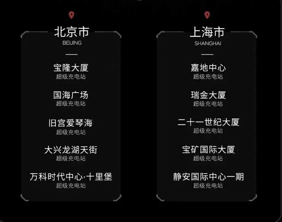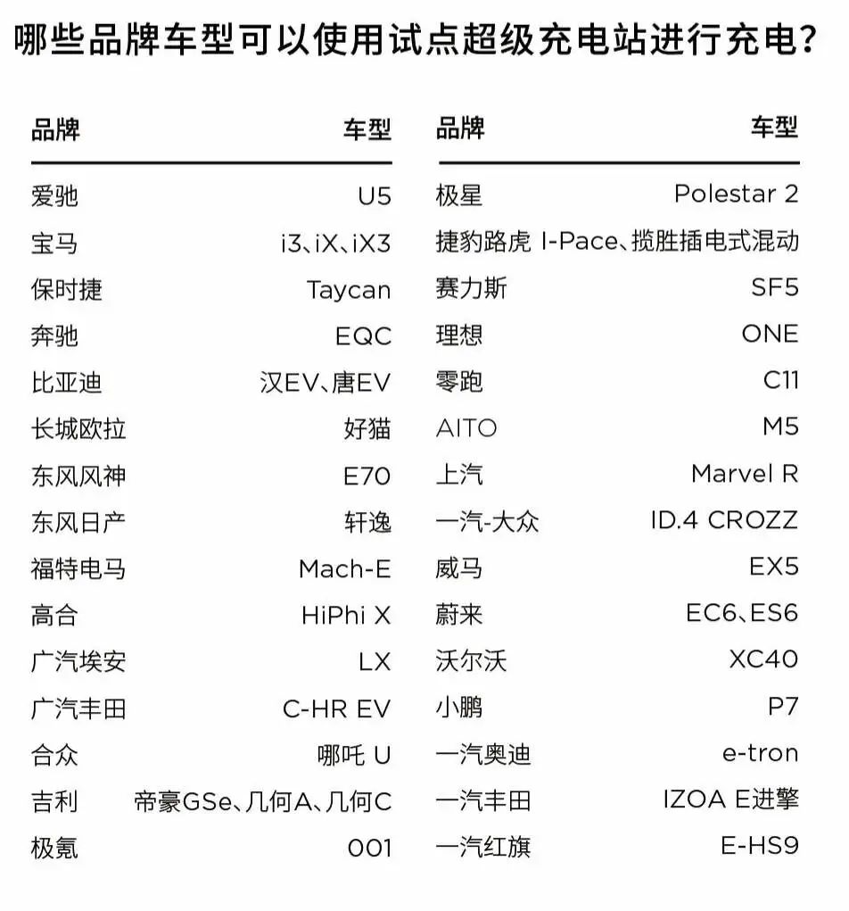 第一批开放10座超级充电站,面向37款非特斯拉车型;120座目的地充电站,覆盖25个省/直辖市。以后这份名单的范围会不断扩大。