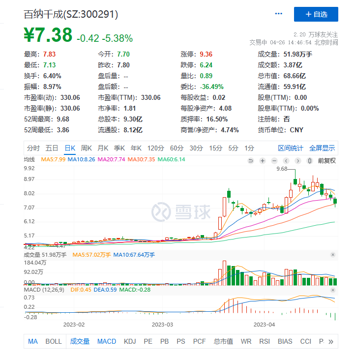 短时间、高涨幅的百纳千成基本面迎来反转了吗?